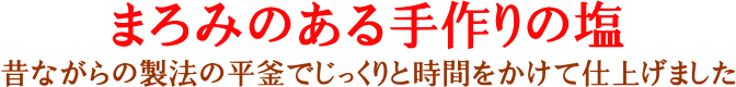 笹川流れは新潟県の県立自然公園にあり、国の名勝天然記念物に指定されている海岸です。白砂の海岸に突き出た花崗岩の岬は、日本海の荒波の浸食により様々な変化に富んでいます。その「笹川流れ」のきれいな海水と海外産天目塩をもとに、昔ながらの製法の平釜でじっくりと時間をかけて仕上げました。まろみのある手造りのおいしいお塩です。